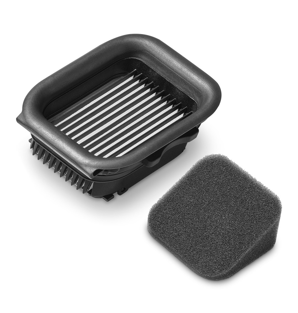 Wielostopniowy system filtrów Duo!Pure do mopów elektrycznych KFL 1, FCV 2 i FCV 3, składający się z płaskiego filtra plisowanego i filtra gąbkowego, zapewnia niezawodną ochronę przed wilgocią i gwarantuje doskonałą filtrację. Wysoce wydajny płaski filtr plisowany skutecznie wychwytuje nawet najmniejsze cząsteczki z powietrza. Tryb suchy idealny do stosowania na dywanach i wykładzinach.